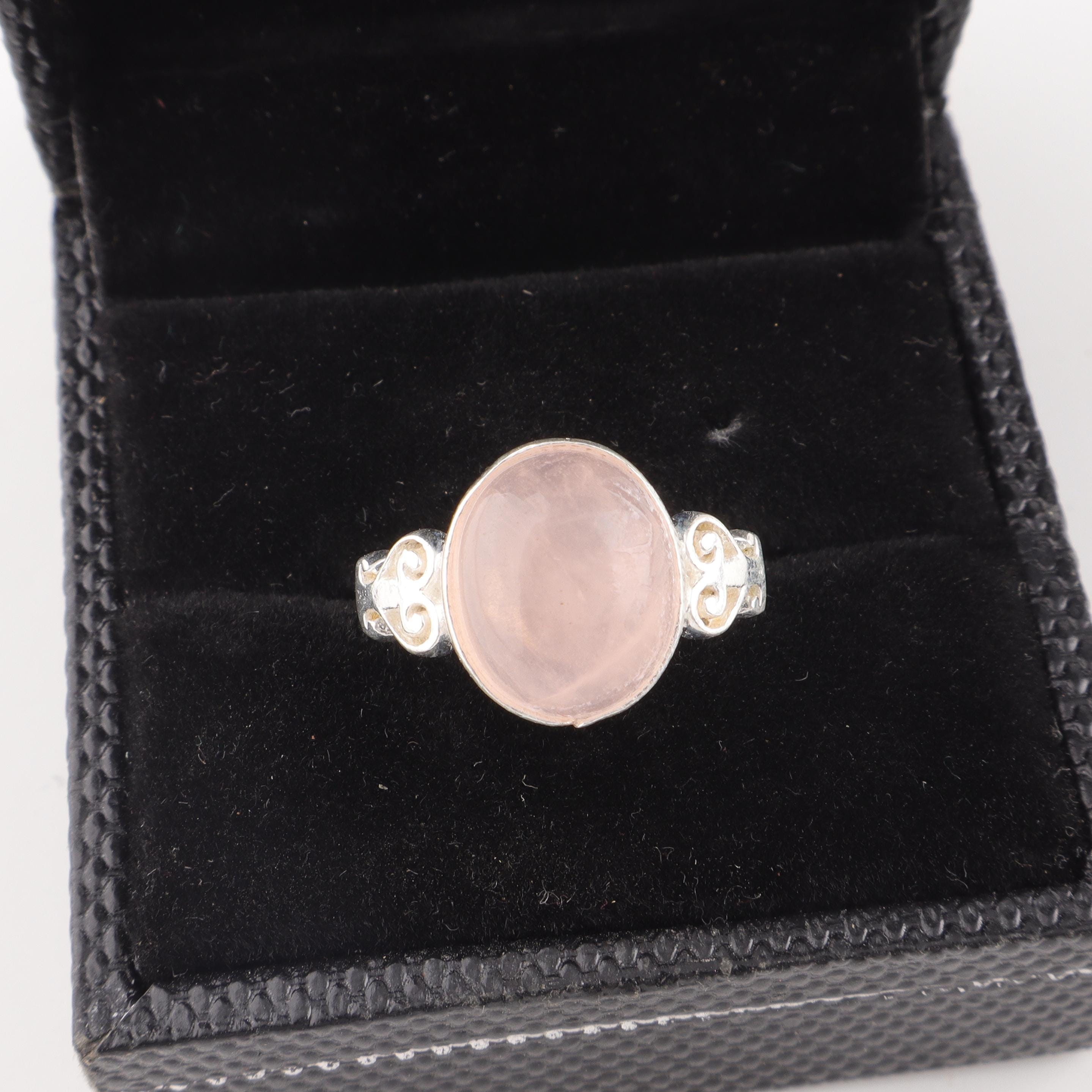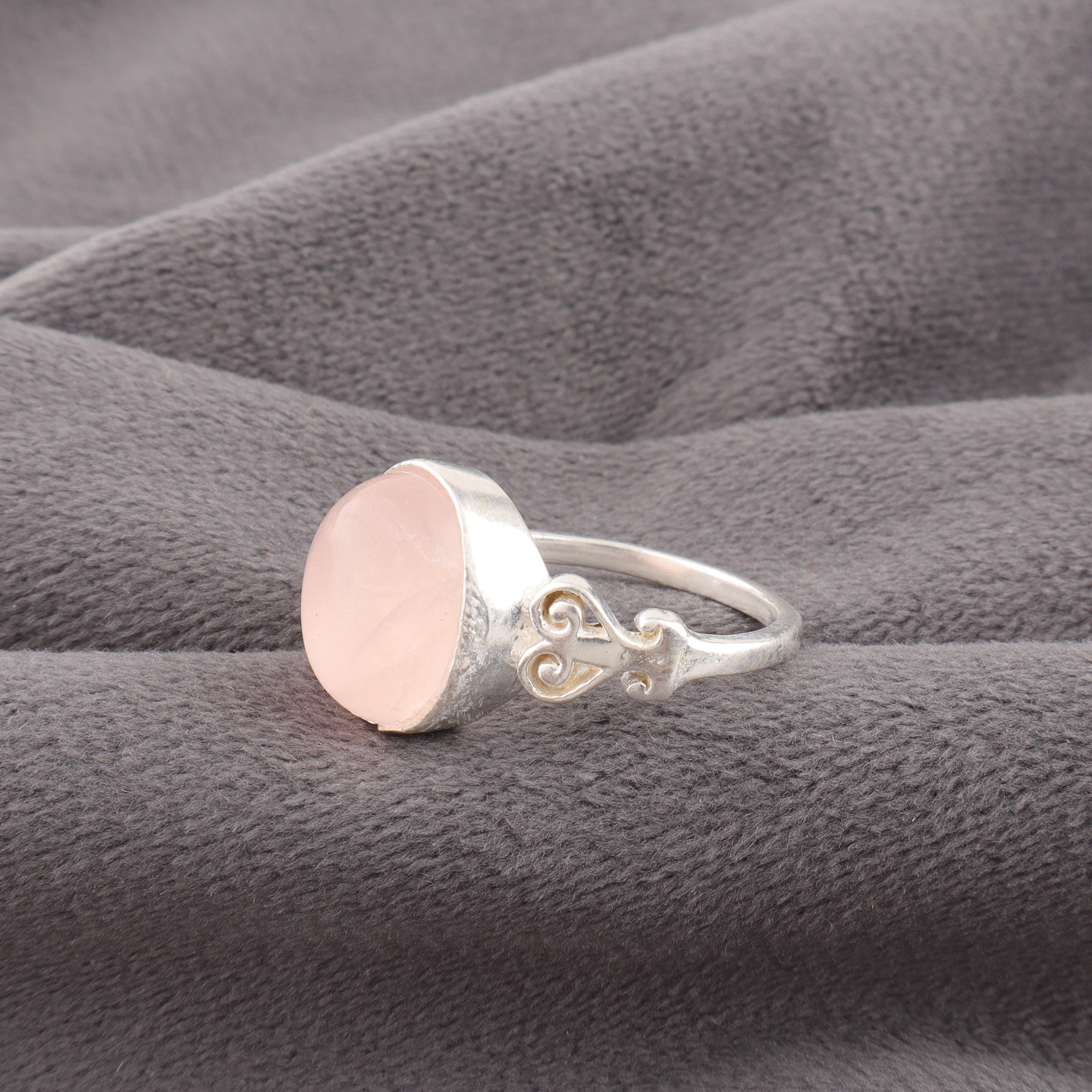 Handmade Rose Quartz Ring: 925 Sterling Silver Pink Gemstone Jewelry