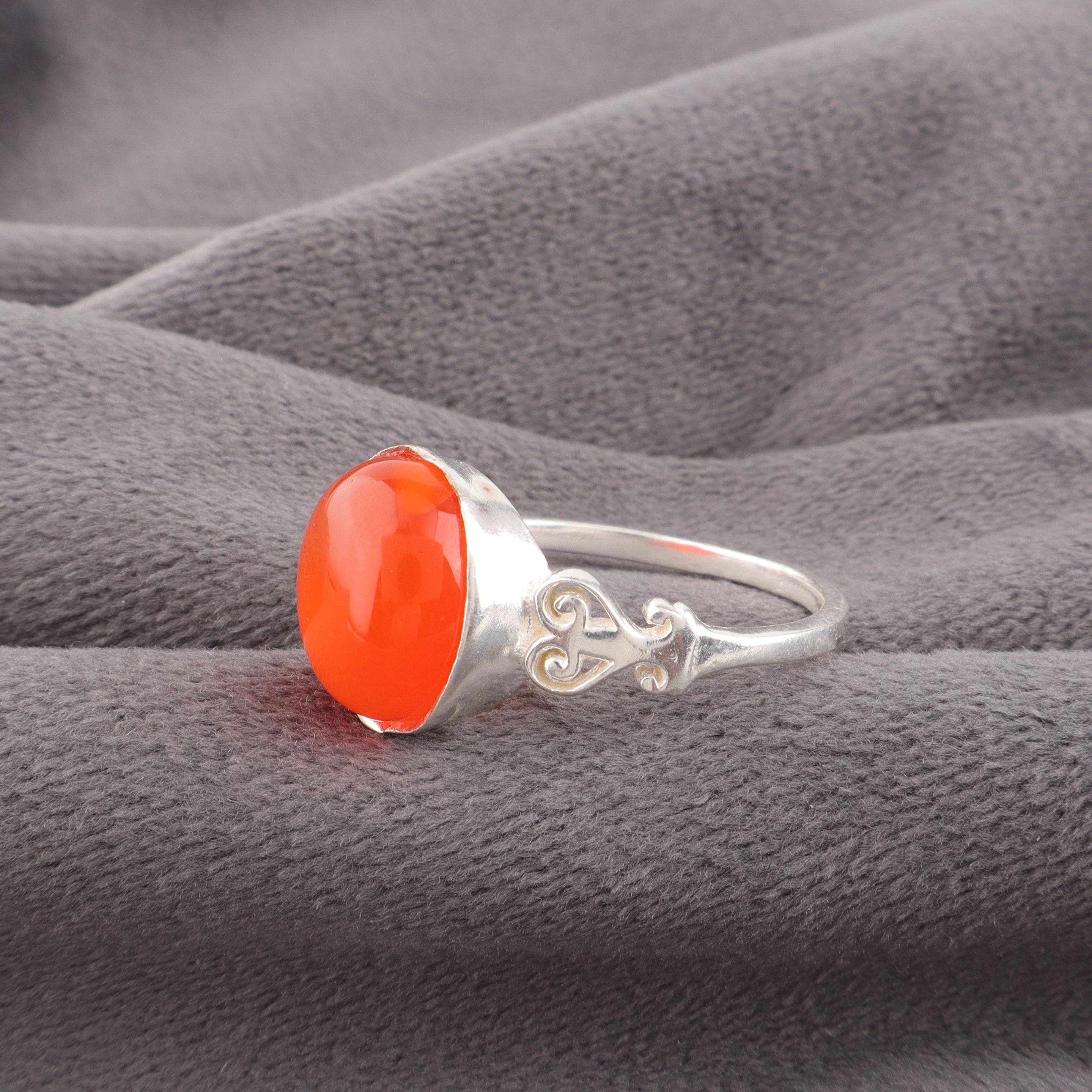 Handmade Carnelian Ring: 925 Sterling Silver Orange Gemstone Jewelry